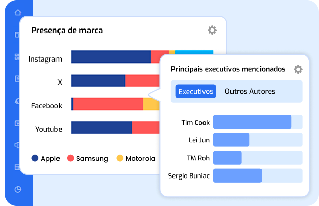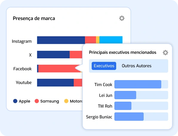 Compare a performance da sua marca com a concorrência em mais de 1 milhão de fontes. Faça benchmarking competitivo para identificar oportunidades, mensurar desempenho e antecipar movimentos do seu mercado. Solicitar demonstração grátis