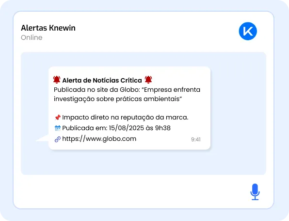 Com a Knewin, sua equipe de comunicação e reputação ganha o poder de detectar crises antes que elas se tornem manchetes.