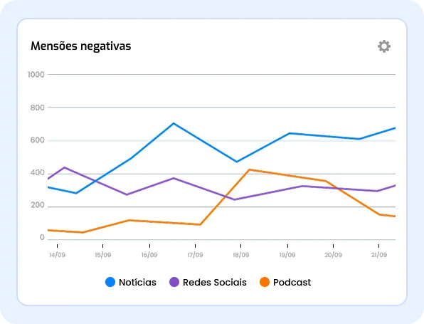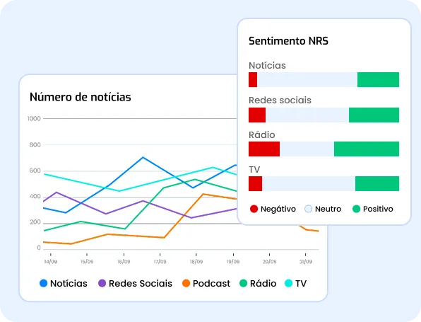 Receba alertas imediatos quando temas sensíveis surgirem nas mídias on e offline e evite que pequenos ruídos se tornem crises. Nossa plataforma classifica e identifica os sentimentos das menções, permitindo que a sua marca ganhe tempo para agir com segurança.Quero proteger minha marca