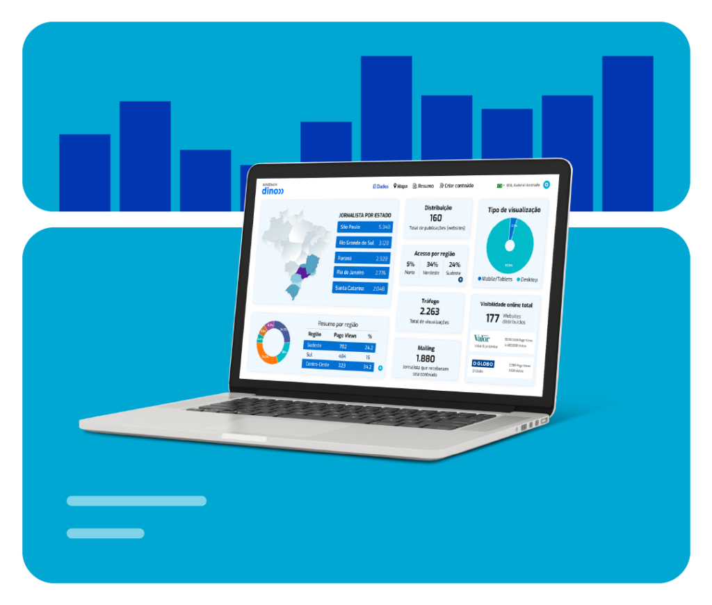 O Knewin Dino é um divulgador de notícias que publica os conteúdos da sua marca nos principais portais de notícias do Brasil. Você garante visibilidade com estratégia e agilidade.