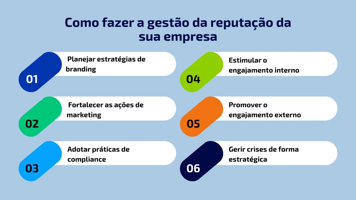 A reputação de uma empresa é um dos ativos mais valiosos no mercado. Uma boa imagem fortalece a confiança de clientes, investidores e colaboradores, enquanto problemas de percepção podem gerar impactos negativos duradouros. Por isso, a gestão da reputação deve ser estratégica e contínua. Confira seis passos essenciais para implementar essa prática na sua empresa: